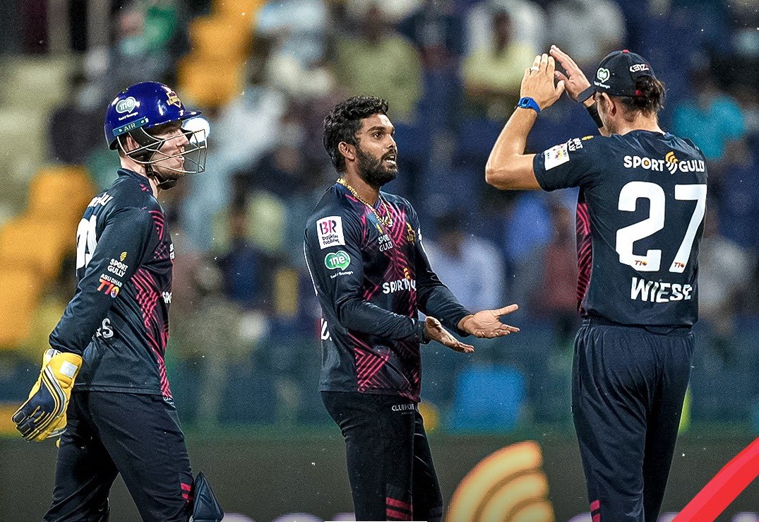 उसका लागि इसरू उडानाले ३३, कप्तान फाफ डुप्लेसिसले १५ र जोनसन चार्लसले १० रन बनाए । बाँकी ब्याटरले भने दोहोरो अंकमा समेत रन जोड्न सकेनन् । बलिङमा वानिन्दु हसरंगाले २ ओभरमा एक मेडनसहित ८ रन दिएर सर्वाधिक ५ विकेट लिए।
