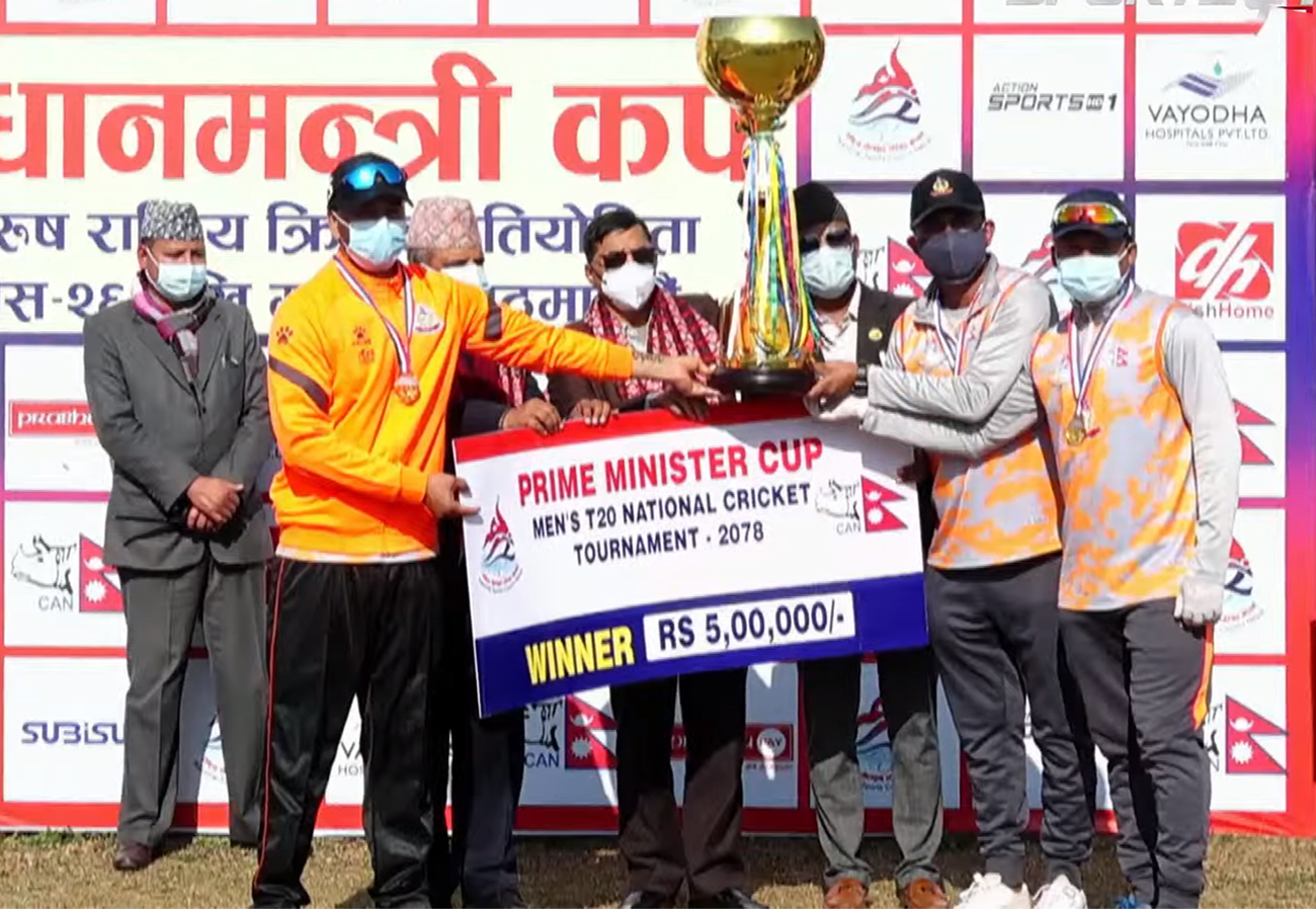 सशस्त्र प्रहरी बलको नेपाल एपिएफ क्लबले प्रधानमन्त्री कप टी-२० राष्ट्रिय क्रिकेट प्रतियोगिताको उपाधि जितेको छ।