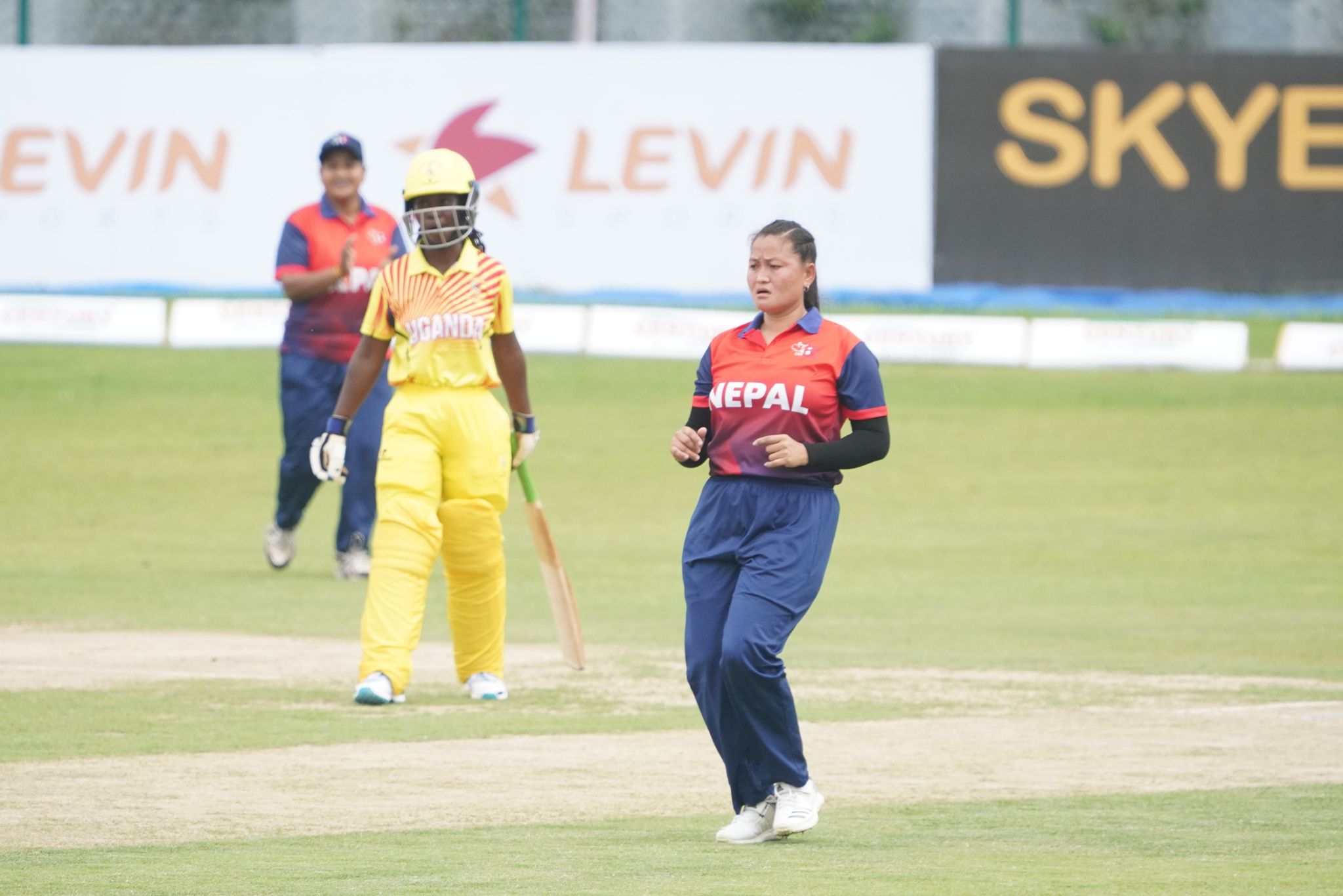 बलिङमा नेपालकी कविता कुँवरले २ विकेट लिइन् भने कप्तान रुबिना क्षेत्री, कविता जोशी र इन्दु बर्माले समान एक÷एक विकेट लिए। यस जीतसँगै युगान्डाले पाँच खेलको सिरिजमा १–० को अग्रता बनाएको छ।