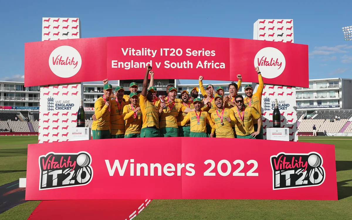 दक्षिण अफ्रिकाले घरेलु टोली इंग्ल्यान्डविरूद्धको तीन खेलको टी-ट्वान्टी सिरिज जितेको छ ।