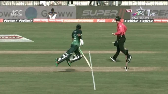 यस्तै नेपालले तेस्रो विकेटको रुपमा मोहमद रिजवानलाई २३.४ ओभरमा ४४ रनमा रनआउट गर्यो। उनलाई दीपेन्द्रसिंह ऐरीले डाइरेक्स हिडमार्फत् रनआउट गरेका थिए।