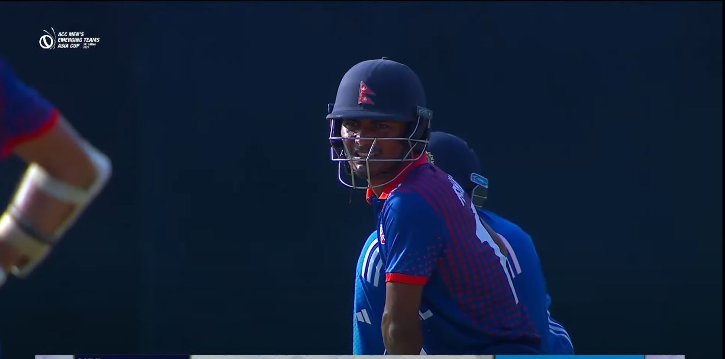 यसअघि नेपालका ओनपर कुशल भुर्तेल ३८ रन बनाएर आउट भएका छन्। शार्दूल ठाकुरको बलमा दशौं ओभरको पाँचौ बलमा आउट हुनुअघि उनले २५ बलमा ३ चौका र २ छक्का हिर्काए। उनले आसिफ शेखसँग पहिलो विकेटका लागि ९.५ ओभरमा ६५ रनको साझेादरी गरेका थिए।