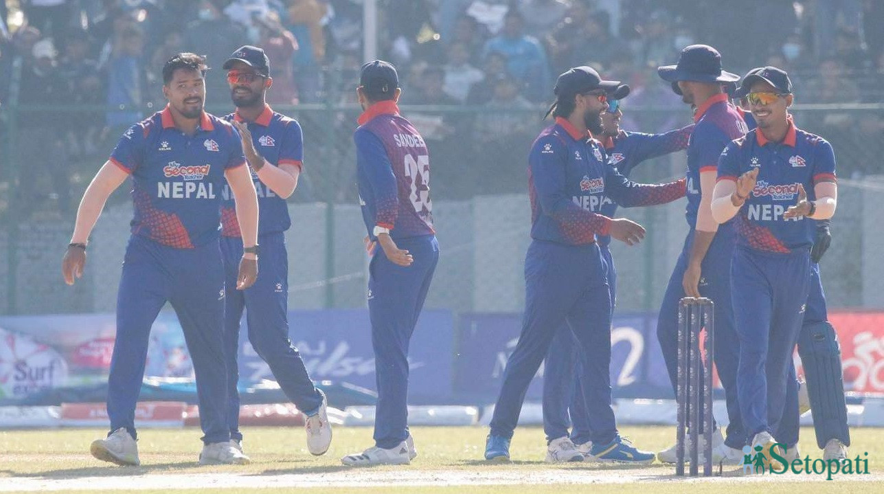 नेपालका लागि पाँचौ र छैटौं विकेट सन्दीप लामिछानेले लिए। सन्दीपले १४औं ओभरको पहिलो र दोस्रो बलमा लगातार विकेट लिएका थिए। सन्दीपले आयान खानलाई १८ रनमा बोल्ड गर्दा मोहरान खानलाई शून्यमा एलबिडब्लूको धरापमा पारे।
