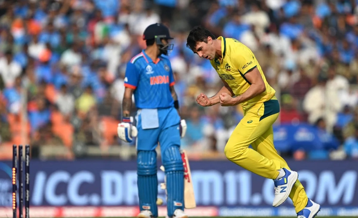 दशौं ओभरको चौथो बलमा भारतका ओपनर तथा कप्तान रोहित शर्मा ४७ रनमा आउट भए। उनलाई म्याक्सवेलले त्रविस हेडबाट क्याच गराए। उनले आउट हुनुअघि ३१ बलमा ४ चौका र ३ छक्का प्रहार गरे। अर्को ओभरमा कप्तान पाट कमिन्सले श्रेयष अय्यरलाई ४ रनमा आउट गरेपछि भारत दबाबमा आएको थियो।
