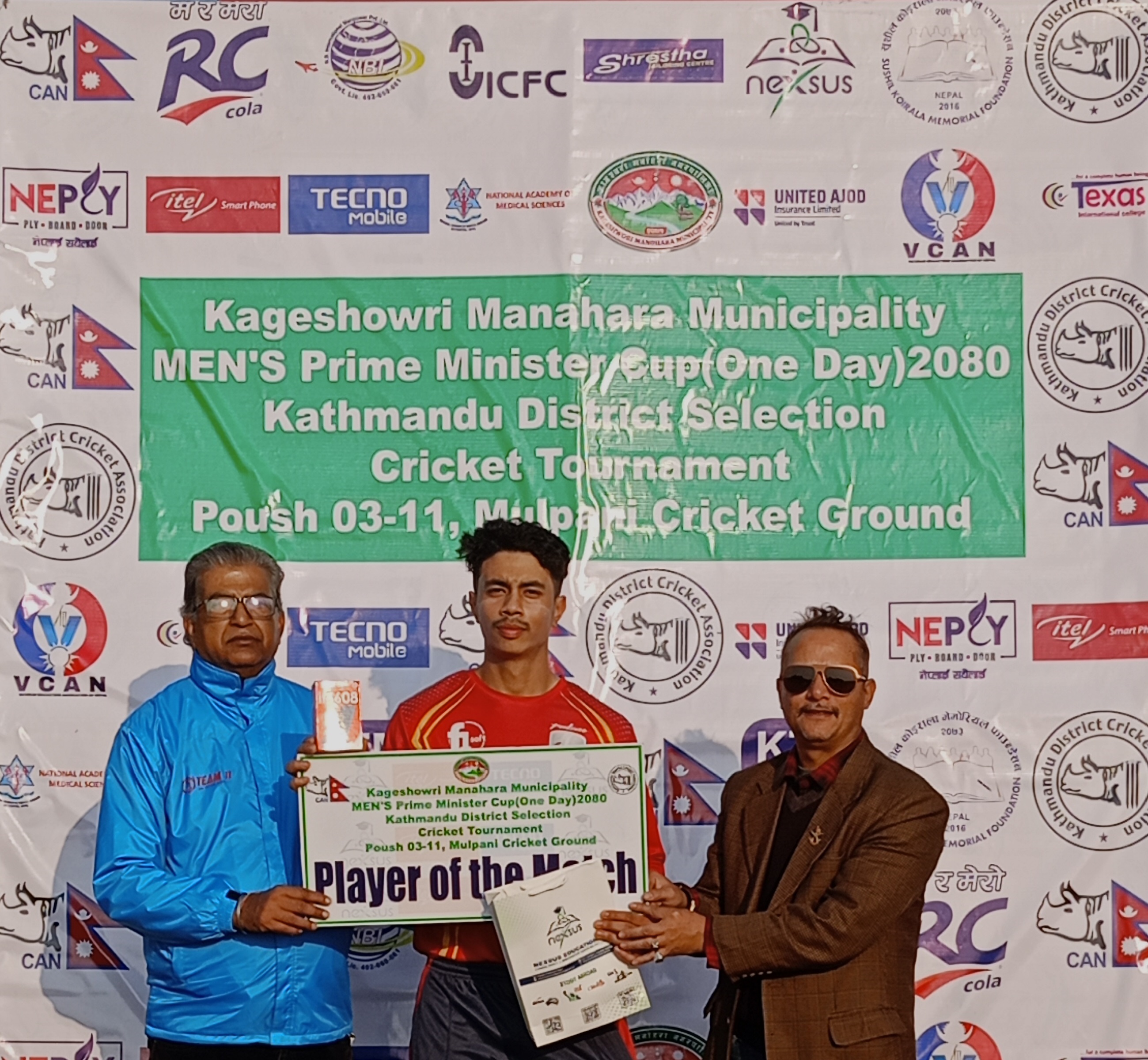 प्रत्येक खेलको प्लेयर्स अफ दि म्याचलाई आइटेल ब्रान्डको मोबाइल र ट्रफी दिइनेछ। प्रतियोगिताको उत्कृष्ट खेलाडी, उत्कृष्ट ब्याट्सम्यान र उत्कृष्ट बलरलाई श्रेष्ठ टेलरिङको प्रायोजनमा सुट र आइटेल ब्रान्डको मोबाइल प्रदान गरिनेछ।