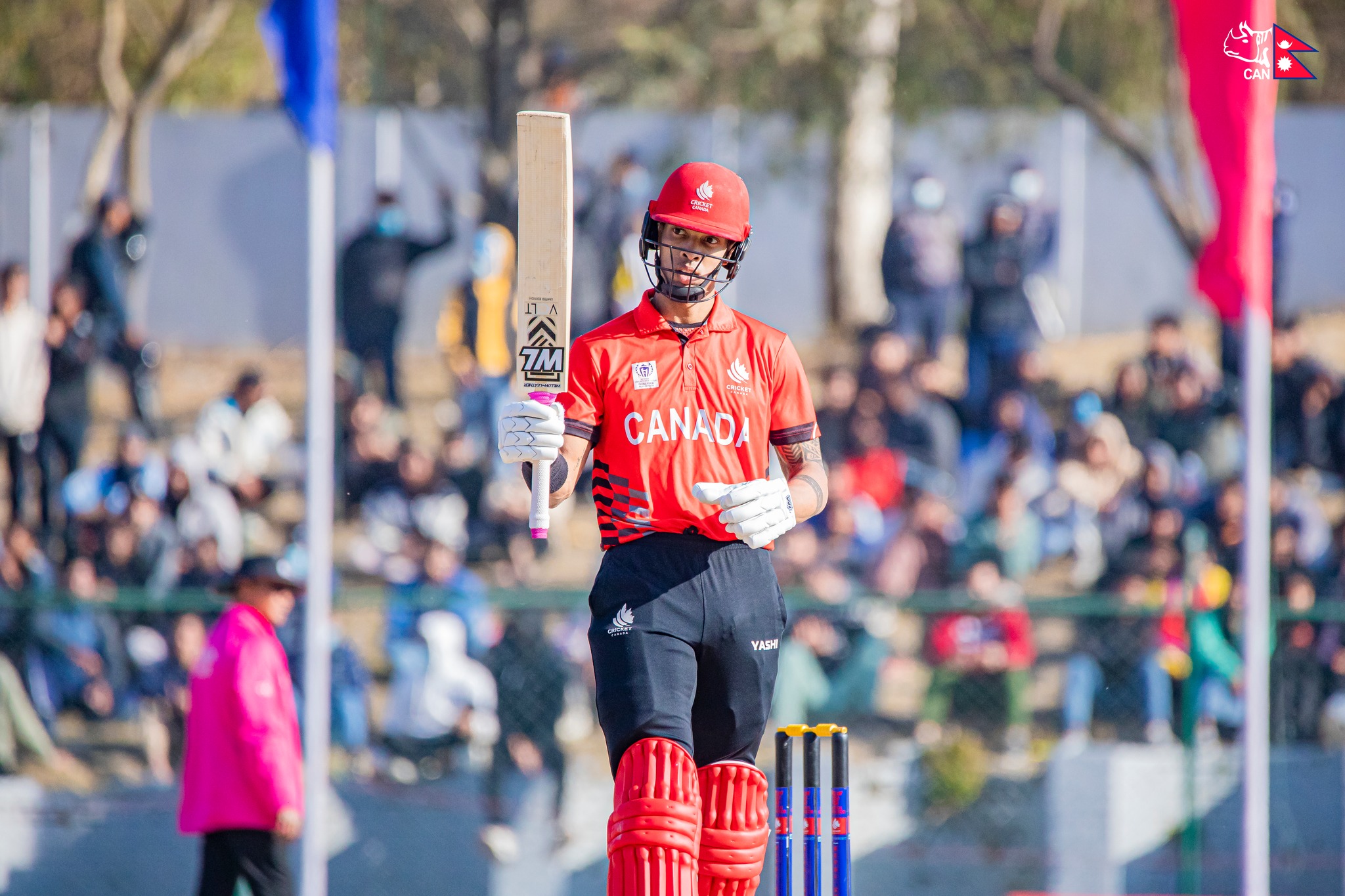 नेपालले दिएको २२५ रनको लक्ष्य पछ्याएर ब्याटिङ गरिरहेको क्यानडाका निकोलास किर्टनलाई पवन सरार्फले बोल्ड गर्दै नेपाललाई छैटौं विकेट दिलाए।