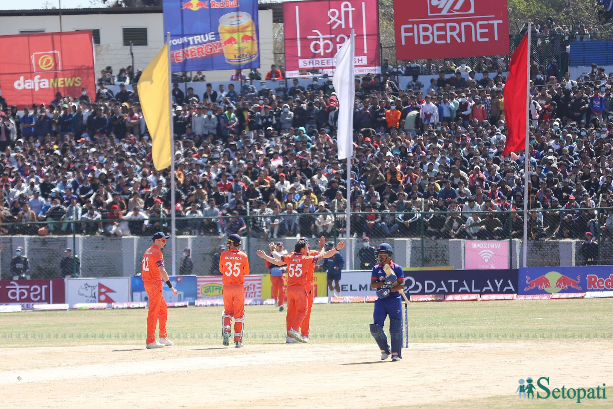 टी-२० सिरिजअन्तर्गत नेदरल्यान्ड्सविरूद्धको फाइनल खेलमा नेपालले दोस्रो विकेट गुमाएको छ।