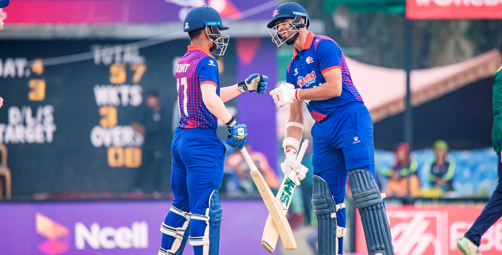 कप्तान रोहितकुमार पौडेलले २४ बलमा ५ चौका प्रहार गर्दै ३३ रन जोडे। आक्रामक ब्याटिङ गरेका कुशल मल्लले १३ बलमा १ चौका र ४ छक्का प्रहार गर्दै ३४ रन बनाए।