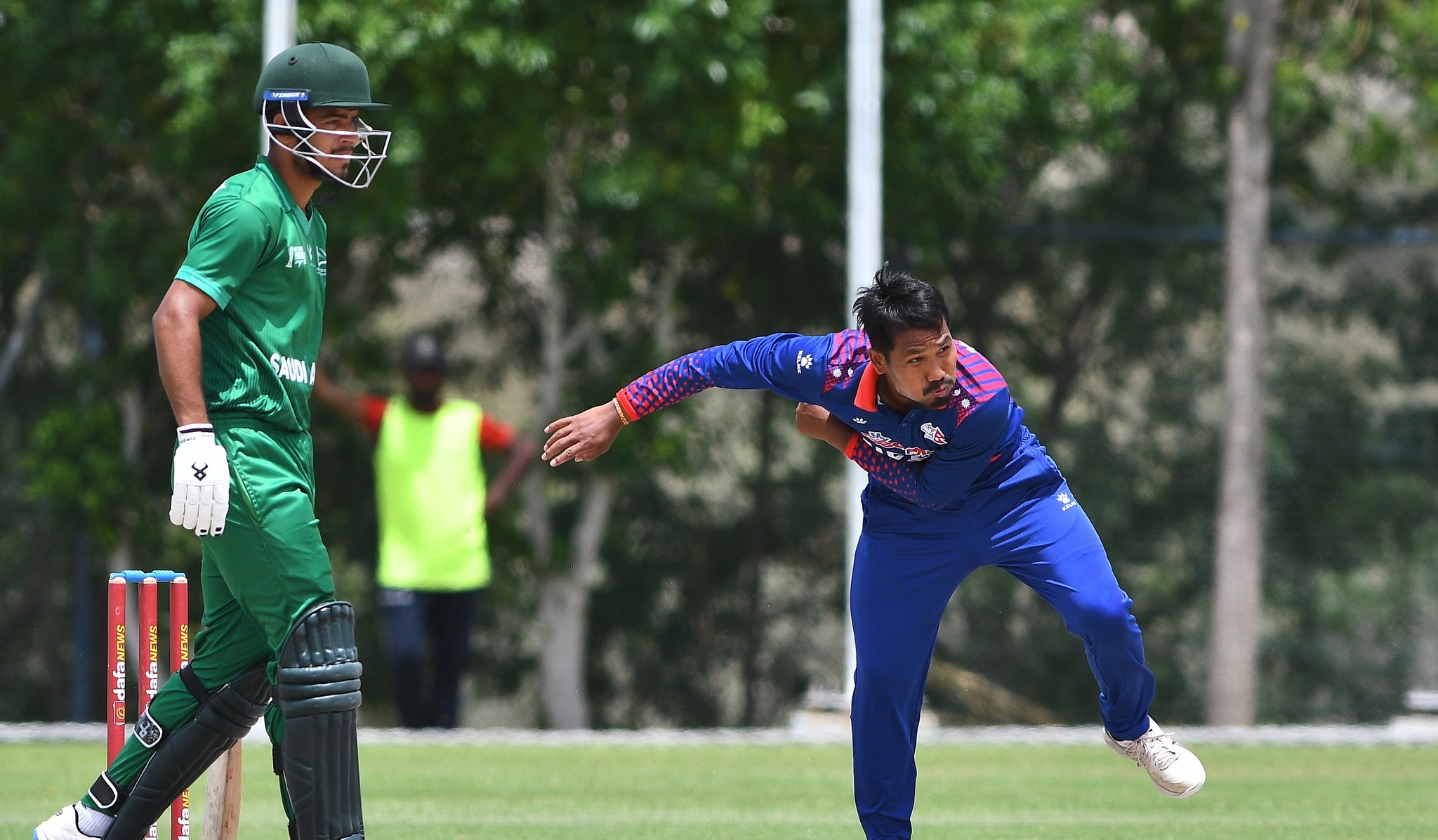 वर्षाका कारण मैदान हिलो हुँदा ८ ओभरमा झारिएको खेलमा टस जितेको नेपालले फिल्डिङ रोजेपछि पहिले ब्याटिङ गरेको साउदीले ७ विकेटको क्षतिमा ७३ जोड्यो।