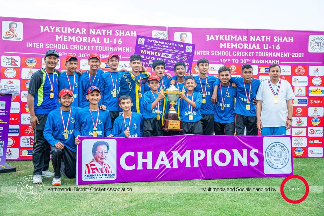 पहिलो संस्करणको जयकुमारनाथ शाह मेमोरियल यू-१६ अन्तरविद्यालय क्रिकेट प्रतियोगिताको उपाधि सैनिक आवासीय महाविद्यालयले जितेको छ।