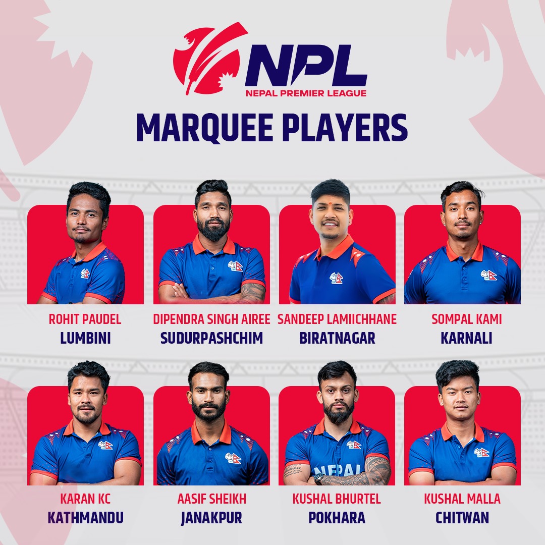 काठमाडौंले तिब्र गतिका अनुभवी बलर करण केसीलाई मार्की खेलाडीको रूपमा पाएको छ । त्यस्तै ओपनर कुशल भुर्तेल पोखरा र अलराउन्डर कुशल मल्ल चितवनको मार्की तय भएका छन् । अर्का ओपनर आसिफ शेख जनकपुर, अनुभवी बलर सोमपाल कामी कर्णाली र दीपेन्द्रसिंह ऐरी सुदूरपश्चिमका मार्की खेलाडीका रूपमा छनोट भएका छन् । पोखराको स्वामित्व नेपाल टी–२० प्रा.लि., काठमाडौंको स्वामित्व कान्तिपुर पब्लिकेशन र चितवनको स्वामित्व चितवन मेडिकल कलेजले खरिद गरेको हो ।
