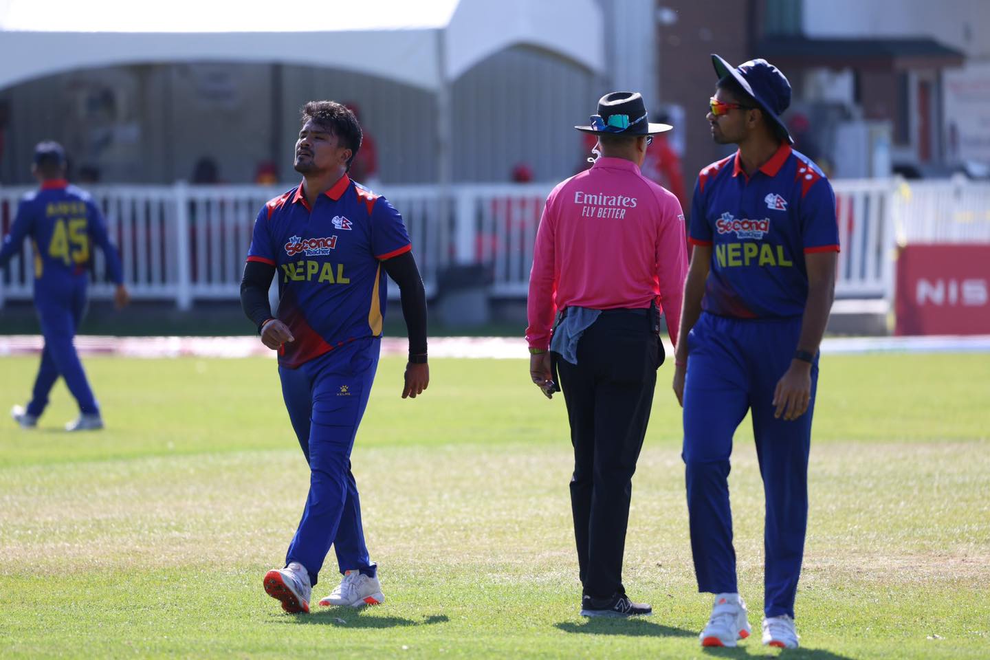 त्यसअघि ओपनर कुशल भुर्तेल १ रनमै आउट हुँदा नेपालले खराब सुरुवात गरेको थियो। १० बल खेलेका उनलाई क्यानडाका हेलिगरले एलबिडब्लूको धरापमा पारे।