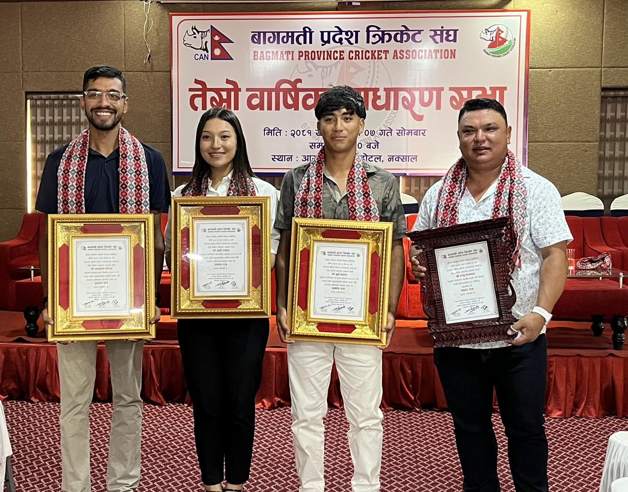 वागमती प्रदेश क्रिकेट संघले सोमबार चार खेलाडी र एक प्रशिक्षकलाई सम्मान गरेको छ।