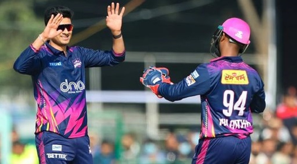 उनलाई जनकपुर बोल्ट्सका क्यानेडियन बलर हर्ष थाकेरले पाँचौ ओभरको दोस्रो बलमा बोल्ड गरे।