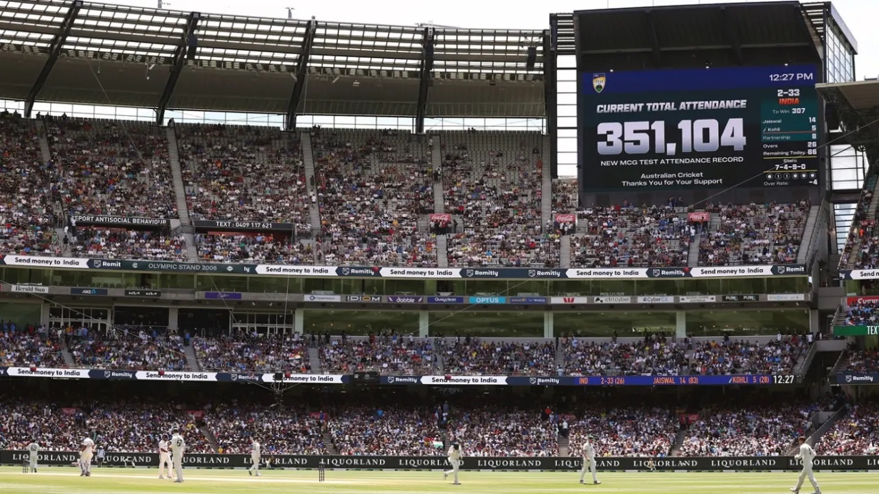 मेलवर्न क्रिकेट मैदानमा घरेलु टोली अस्ट्रेलियाले १८४ रनले जितेको चौथो टेस्टको पाँचौ दिनसम्ममा ३ लाख ७३ हजार ६ सय ९१ जनाले पाँच दिनसम्ममा मैदान प्रवेश गरेपछि नयाँ कीर्तिमान बनेको हो। यो अस्ट्रेलियामा टेस्ट हेर्ने दर्शकको नयाँ रेकर्ड हो। यसअघि अस्ट्रेलियामा सन् १९३७ मा खेलिएको टेस्टमा ३ लाख ५० हजार ५ सय ३४ जनाले टेस्ट हेरेका थिए।
