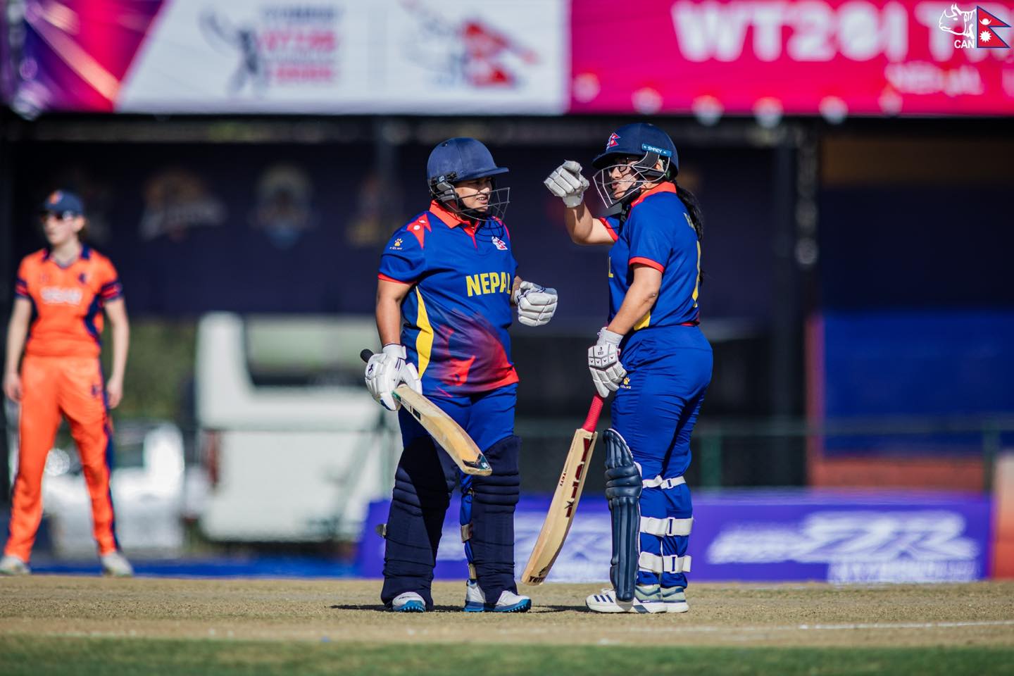 नेपालका लागि सीता रानामगरले ४५ बलमा २८ रन, पूजा महतोले १४ बलमा २४ रन र कविता कुँवरले १७ बलमा २७ रन जोडिन्। पूजाले २ चौका र २ छक्का तथा कविताले १ चौका र २ छक्का प्रहार गरे।