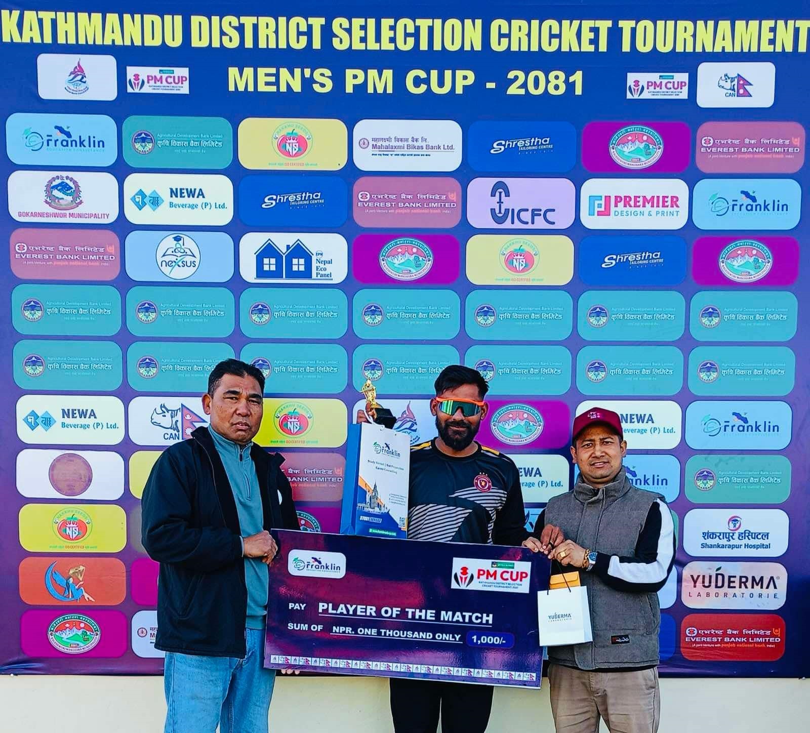 खेलमा महावीरले दिएको १६२ रनको लक्ष्य पछ्याउँदै ब्याटिङ गरेको थर्ड आइले २० ओभरमा ८ विकेट गुमाउँदै ९३ रन मात्रै बनायो।