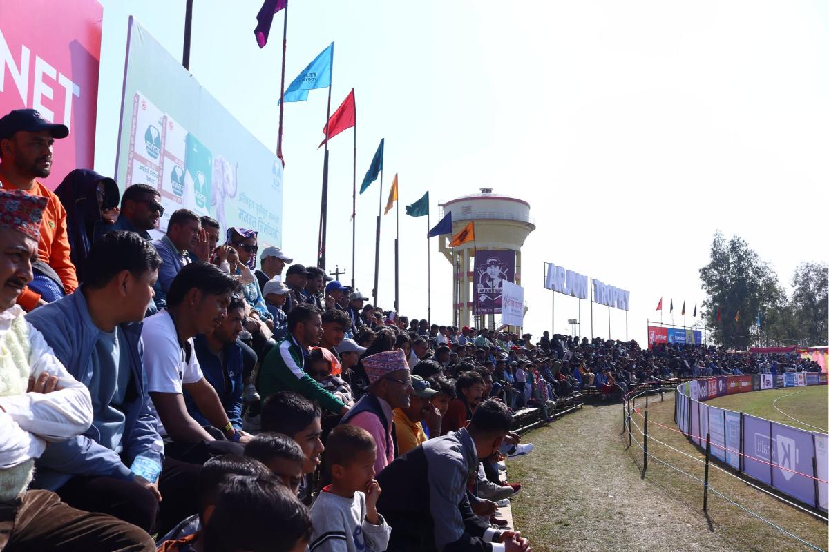 टिकट नकाटेर पनि मैदानबाहिरबाट हेर्ने दर्शकको बाक्लो भिड थियो। रूख, सडक, घेरवारबाट पनि खेल हेर्ने दर्शकको पनि घुइँचो देखियो।