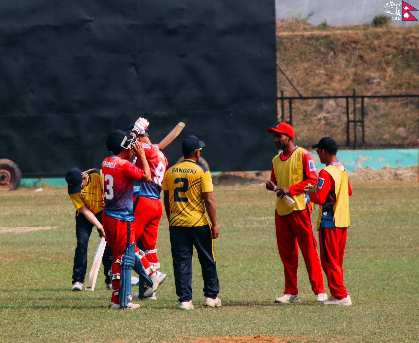 गण्डकीको जितमा प्लेयर अफ दि म्याचर दीपक डुम्रेले नटआउट ५० रन बनाए। उनले ७८ बलमा ७ चौका प्रहार गरे। सुजन गौतमले नटआउट २२ रन जोड्दा अरु ब्याटरले भने दोहोरो अंकमा रन बनाउन सकेनन्।