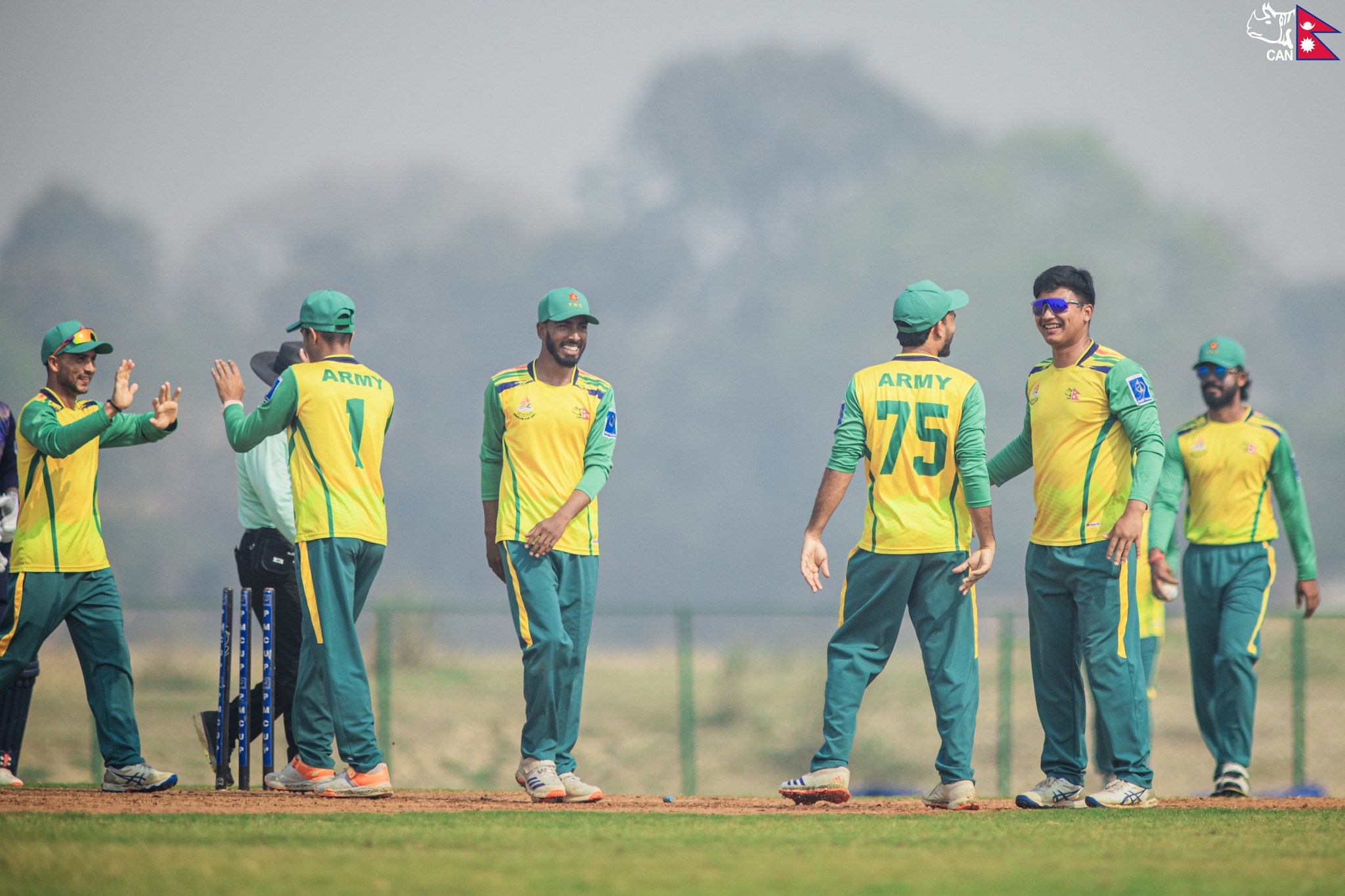 बिहीबार रुपन्देहीको एक्स्ट्राटेक ओभलमा नेपाल पुलिस क्लबलाई लिग चरणको आफ्नो अन्तिम खेलमा ४ विकेटले पराजित गर्दै आर्मीले फाइनलमा स्थान पक्का गरेको हो।