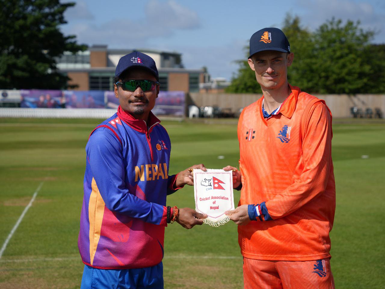 स्कटल्यान्डको डन्डीमा पौने चार बजे सुरू हुने खेलमा नेदरल्यान्ड्सले नेपालविरूद्ध टस जितेर ब्याटिङ रोजेको छ।