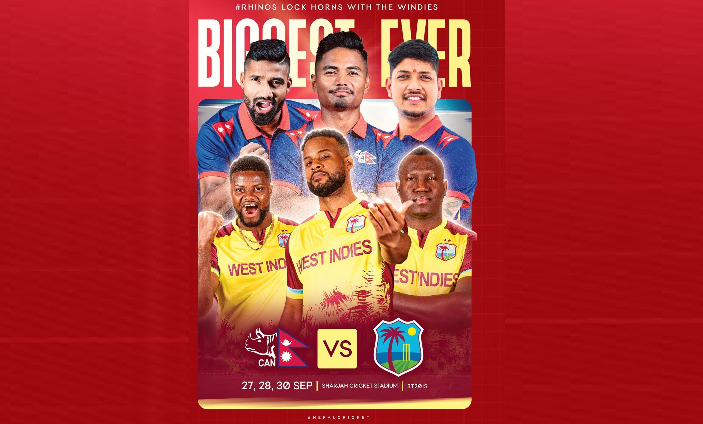 नेपाली टोलीले टी-२० अन्तर्राष्ट्रिय सिरिजमा आइसिसी विश्वकप च्याम्पियन वेस्ट इन्डिजको पहिलो पटक सामना गर्नेछ।