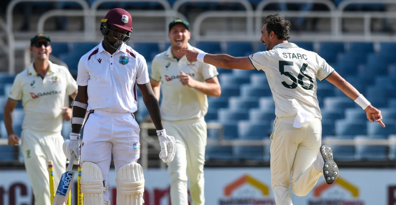 पहिलो ओभरमै ३ विकेट: स्टार्कले इनिङ्सको पहिलो ओभरमै ३ विकेट लिएर वेस्ट इन्डिजको ब्याटिङ लाइनअप ध्वस्त पारे। जसले गर्दा वेस्ट इन्डिजको स्कोर कुनै रन नबनाउँदै ३ विकेट (०/३) हुन पुग्यो।