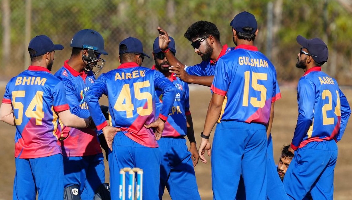 पहिलो अभ्यास खेलमा पहिले ब्याटिङ गरेको नेपालले ८ विकेटको क्षतिमा १७७ रन बनायो। नेपालका लागि आसिफ शेखले ३९ बलमा ६९ रन, रोहित पौडेलले ३६ रन र आरिफ शेखले २४ रन बनाए।