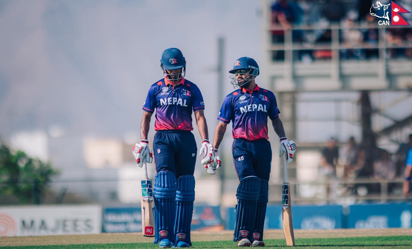नेपालका लागि ओपनिङ ब्याटर आसिफ शेख र दीपेन्द्रसिंह ऐरीले अर्धशतक प्रहार गरे। आसिफले ४१ बलमा ७ चौका र १ छक्काको मद्दतमा ६९ रन जोडे। अर्का ओपनर कुशल भुर्तेल १५ बलमा १७ रन बनाए।