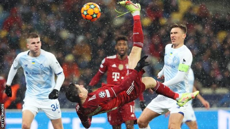 समूह ई अन्तर्गत गएराति भएको खेलमा बायर्न म्युनिखले युक्रेनी क्लब डाइनामो किभलाई २-१ गोल अन्तरमा हराउँदै शतप्रतिशत जितसहित अन्तिम १६ मा स्थान पक्का गरेको हो।