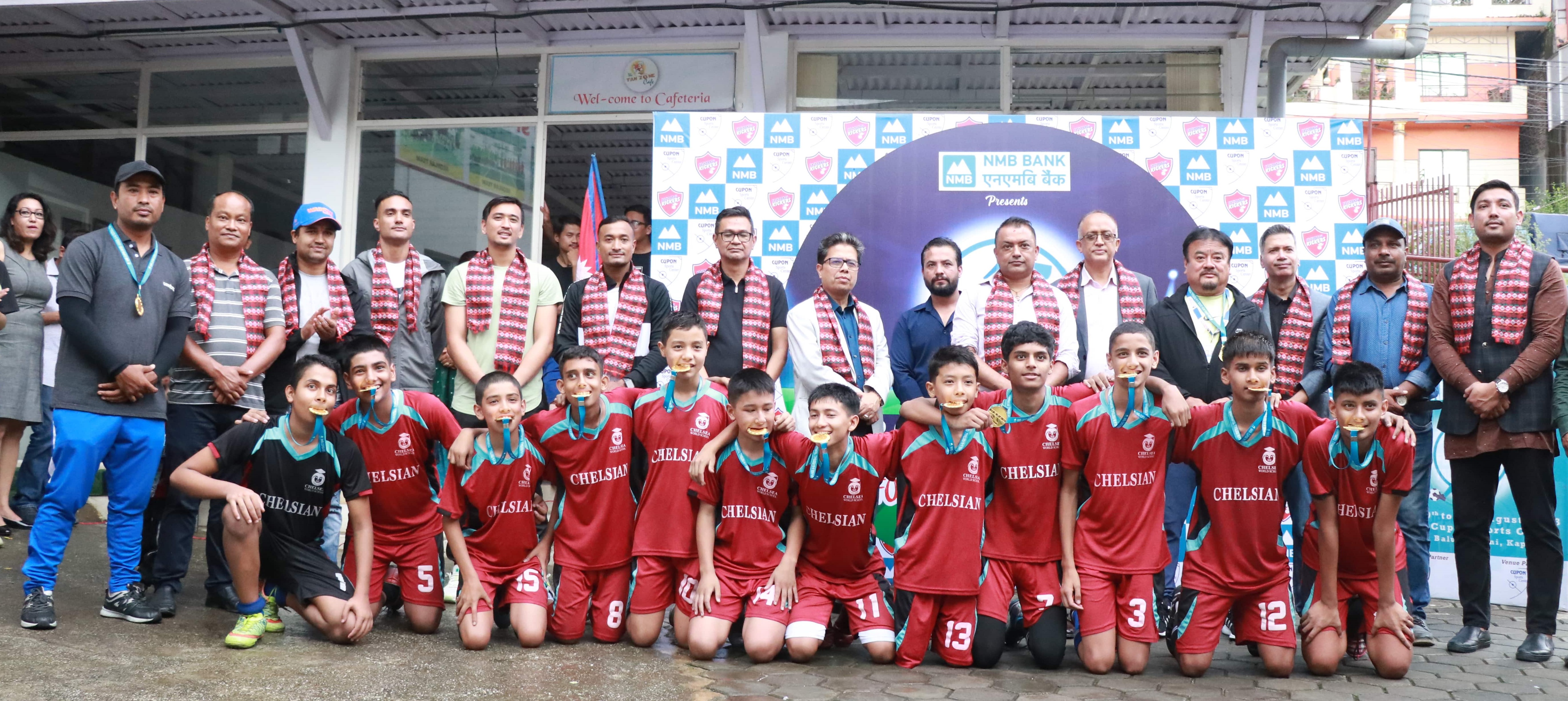 एनएमबी–कपअन अन्तर स्कुल यू १४ फुटबल प्रतियोगिताको उपाधि चेल्सी इन्टरनेसनल स्कुलले जितेको छ ।