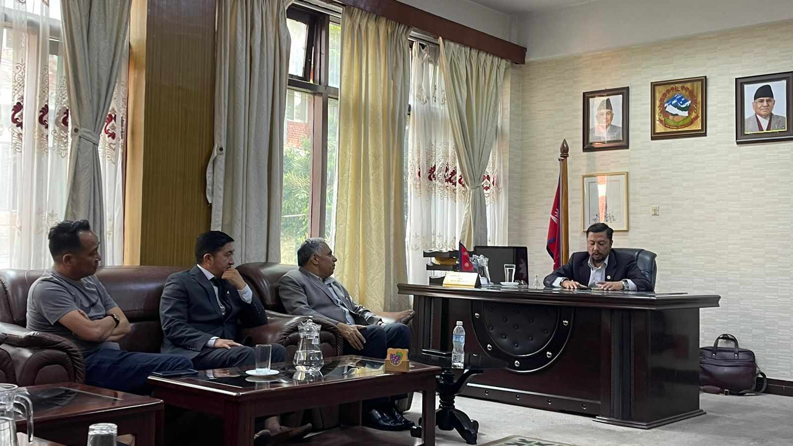 बेलायतमा हुने दुई मैत्रीपूर्ण खेलको लागि नेपाली राष्ट्रिय फुटबल टिमका खेलाडी तथा अफिसियलको भीसा नआएको विषयमा युवा तथा खेलकूद मन्त्री विराजभक्त श्रेष्ठले राष्ट्रिय खेलकुद परिषदका सदस्य सचिवको उपस्थितिमा अखिल नेपाल फुटवल संघ एन्फाका महासचिव किरण राईसँग आज छलफल भएको छ।