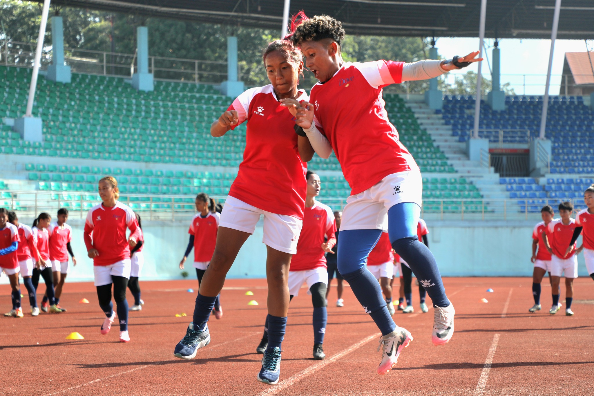 नेपाली टोलीमा फ्रान्समा लिग खेलिरहेकी सावित्रा भण्डारी साम्बा र युएईमा खेलिरहेकी रेखा पौडेल हुँदा मनोबल बढेको छ।