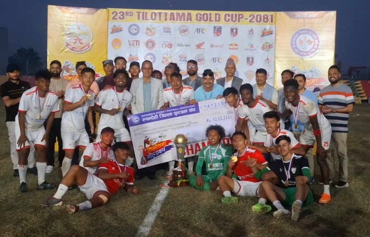 बुटवलमा सम्पन्न २३ औं तिलोत्तमा गोल्डकपको उपाधि चर्च ब्वाइज युनाइटेडले जितेको छ।