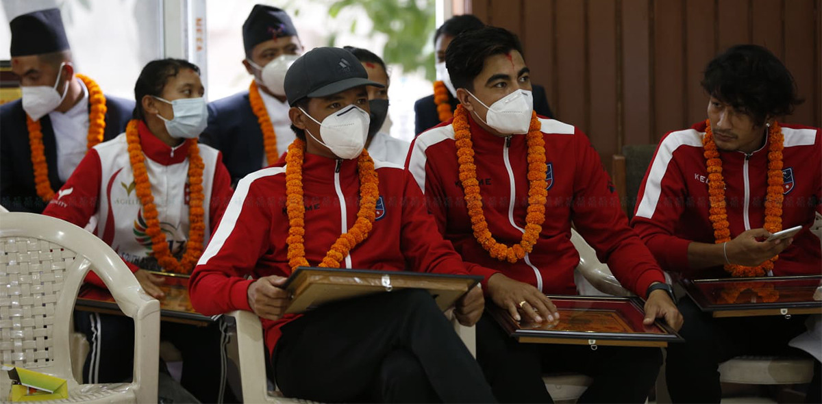 नेपाली कांग्रेस केन्द्रीय खेलकुद विभागले १३ औं दक्षिण एसियाली खेलकुद (साग) मा स्वर्ण जित्ने खेलाडीलाई नगदसहित सम्मान गरेको छ।