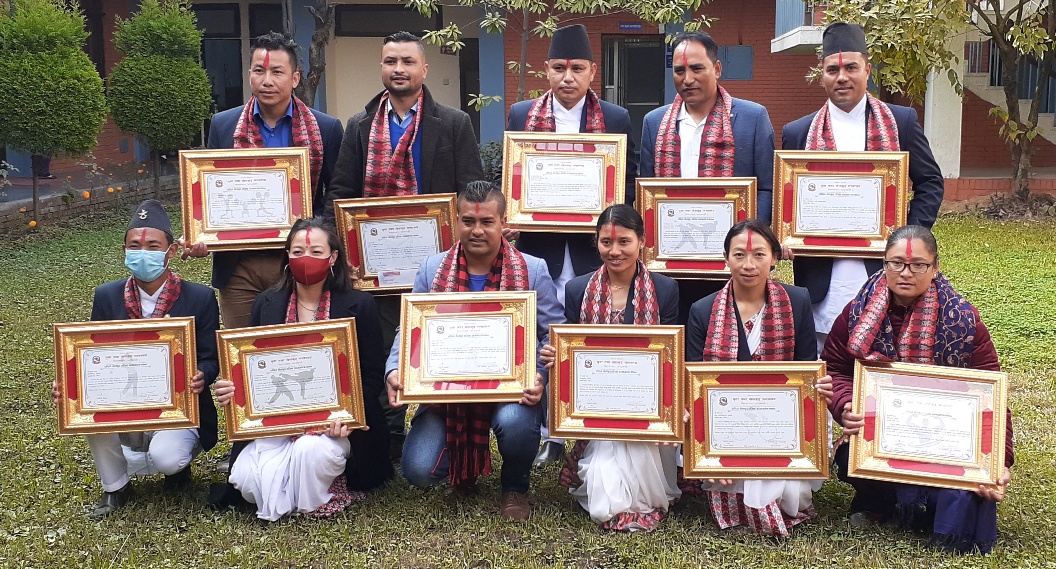 समान १–१ लाख नगदसहित सम्मानित हुनेमा गोल्फका सुवास तामाङ, साइक्लिङकी लक्ष्मी मगर, करातेका मन्डेकाजी श्रेष्ठ र तेक्वान्दोकी आयशा शाक्य छन्।