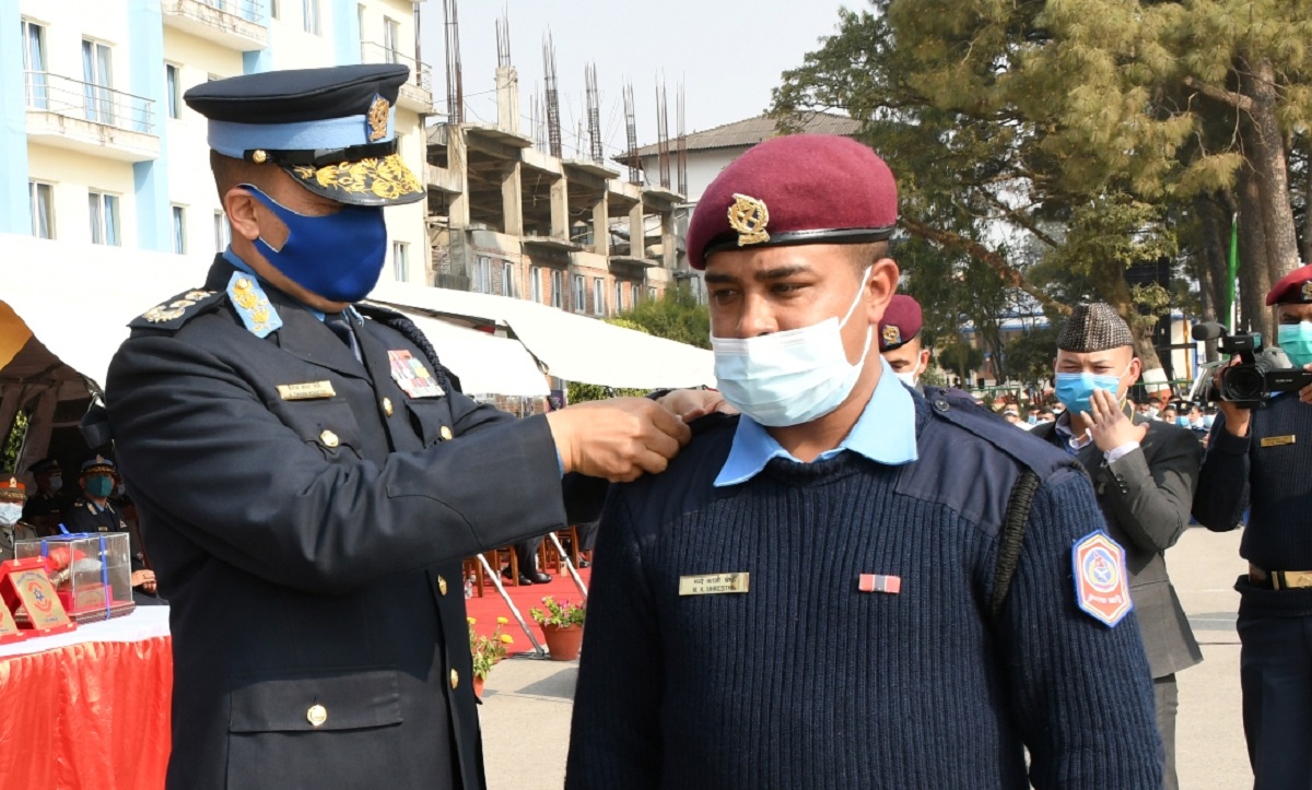 राष्ट्रिय प्रहरी प्रशिक्षण प्रतिष्ठान महाराजगञ्जको ६५औं वार्षिकोत्सवको अवसरमा मन्देलाई प्रहरी महानिरीक्षक शैलेश थापा क्षेत्रीले दर्ज्यानी चिन्ह प्रदान गरे।