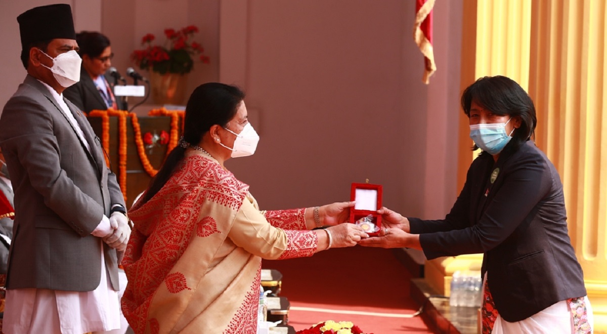खेल क्षेत्रबाट विभूषित उनीहरूलाई राष्ट्रपति विद्यादेवी भण्डारीले शितल निवासमा आयोजित एक विशेष समारोहबीच पदक प्रदान गरिन्।