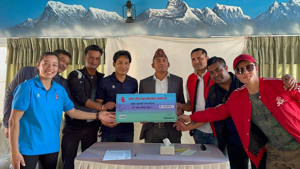 धुर्मुस सुन्तली फाउण्डेसनले निर्माण गरिरहेको रङ्गशालामा आर्थिक समस्या भएको र त्यसमा सघाउ पुर्याउने उद्देश्यले संघले कुर्सी किनेको हो। संघले एनएनआइपीए स्पोर्टस अवार्डबाट बचत भएको एक लाख रुपैयाँ कुर्सी बुक गर्न दिएको हो।