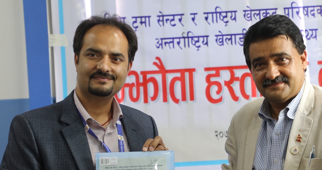 राष्ट्रिय तथा अन्तर्राष्ट्रिय खेलाडीहरूको स्वास्थ्य उपचारका सम्बन्धमा राष्ट्रिय खेलकुद परिषद् (राखेप) र राष्ट्रिय ट्रमा सेन्टरबीच शुक्रबार सम्झौता भएको छ। राष्ट्रिय तथा अन्तर्राष्ट्रिय खेलाडीको प्रभावकारी औषधी उपचार गर्ने-गराउने सम्बन्धमा नेपाल खेलकुद महासंघ (नेकोस) को विशेष पहलमा सम्झौता भएको हो।
