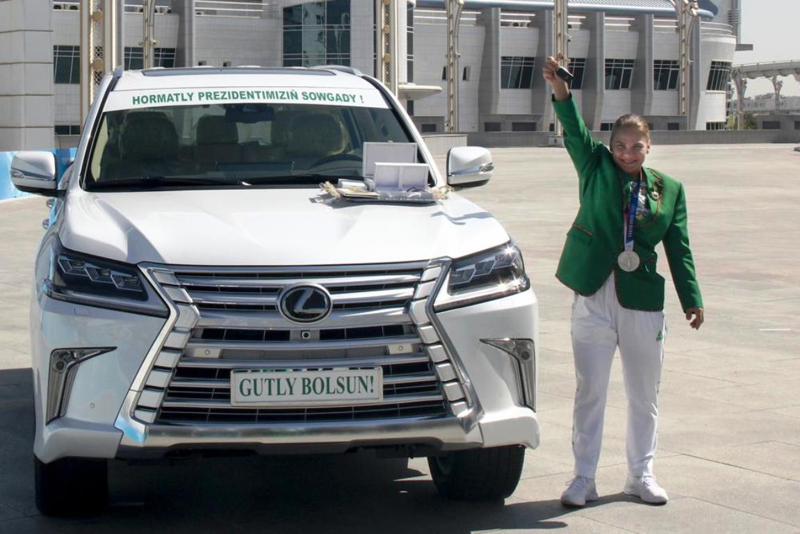 देशका लागि पहिलो पदक जितेपछि राष्ट्रपति गुर्बानगुली बेर्दीमुखामेदौभले पदक विजेता खेलाडी पोलिनालाई पुरस्कार दिएका छन्।
