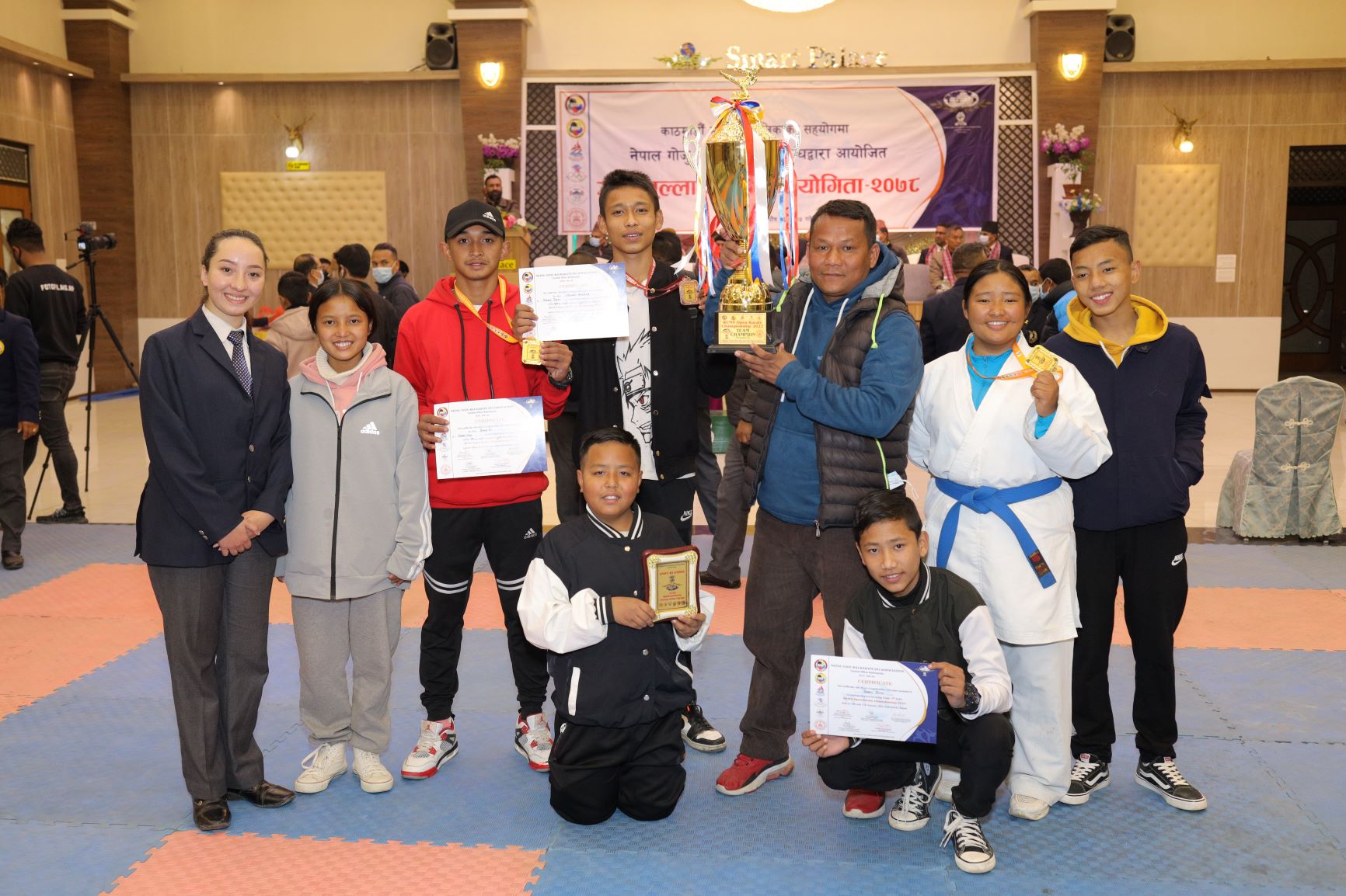 चुच्चेपाटीस्थित स्मार्ट प्यालेसमा मंगलबार सम्पन्न प्रतियोगितामा जोरपाटीले ५ स्वर्ण, १ रजत र ३ कांस्य जितेर च्याम्पियन बनेको हो । ४ स्वर्ण, ३ रजत र ५ कांस्य जितेर मानसिंह डोजो उपविजेता भएको छ । ३ स्वर्ण जितेको शंखडोल डोजो तेस्रो भयो ।
