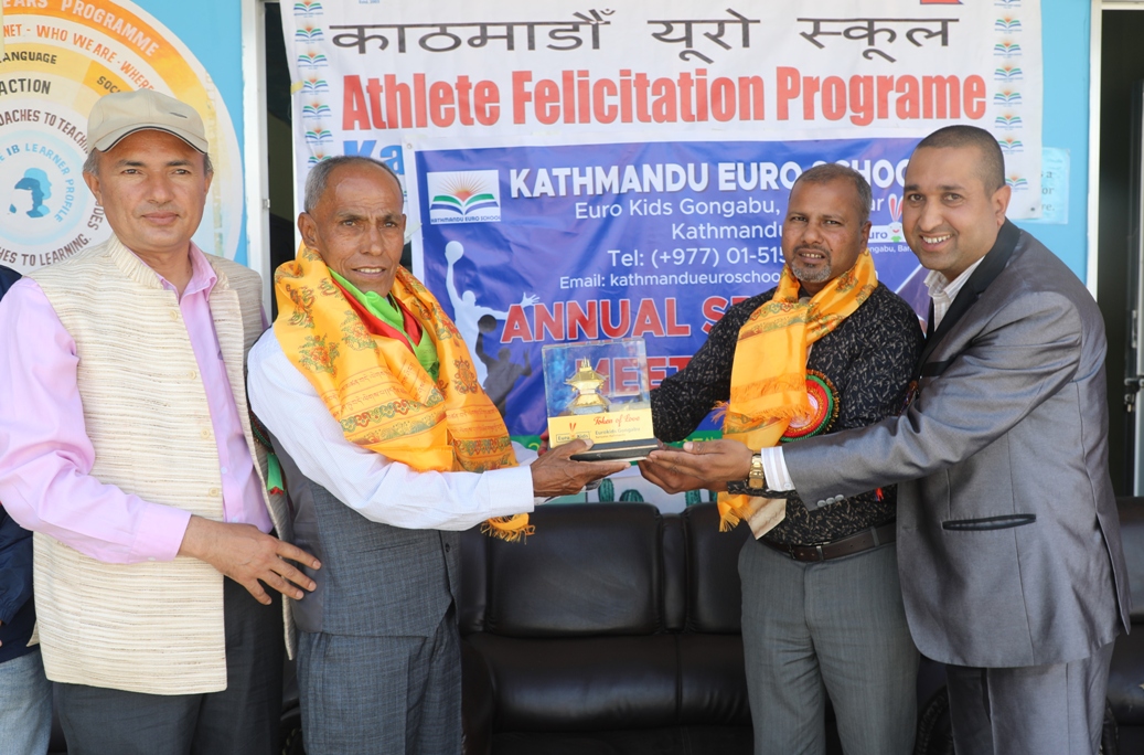 काठमाडौं युरो स्कुल-युरो किड्स, गोंगबुले पूर्व धावक बैकुण्ठ मानन्धरलाई शुक्रबार नगदसहित सम्मान गरेको छ । युरोको वार्षिक खेलकुद दिवसको समापन अवसरमा मानन्धरलाई सम्मान गरिएको हो।