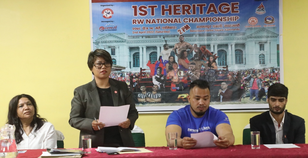 नेपाल रिङ रेस्लिङ संघको आयोजनामा प्रथम हेरिटेज आरडब्लु राष्ट्रिय रेस्लिङ प्रतियोगिता चैत १९ गते हुने भएको छ।
