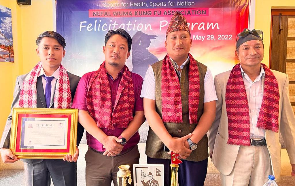 कार्यक्रम संयोजक एवं नेपाल उमा कुङफु संघका सचिव रमेश महर्जन, नेपाल उमा कुङफु संघका वरिष्ठ उपाध्यक्ष सन्जीतकुमार राई, उपाध्यक्ष मुन्नी सुवेदी, पूर्व अध्यक्ष उद्धव थापा मगर, उमा कुङफुका प्रमुख प्रशिक्षक दीपक श्रेष्ठलगायतले एक कार्यक्रमबीच प्रशंसा पत्र प्रदान गरी सम्मान गरे।