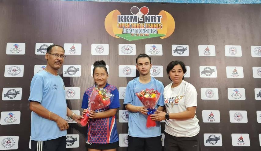 आयोजक काठमाडौं खेल मण्डल (केकेएम) न्यु रोड टिम (एनआरटी) का हिमाल विष्ट र एपीएफकी वियन्का राईले केकेएम/एनआरटी खुला टेबलटेनिस प्रतियोगितामा बिहीबार स्वर्ण जितेका छन्।