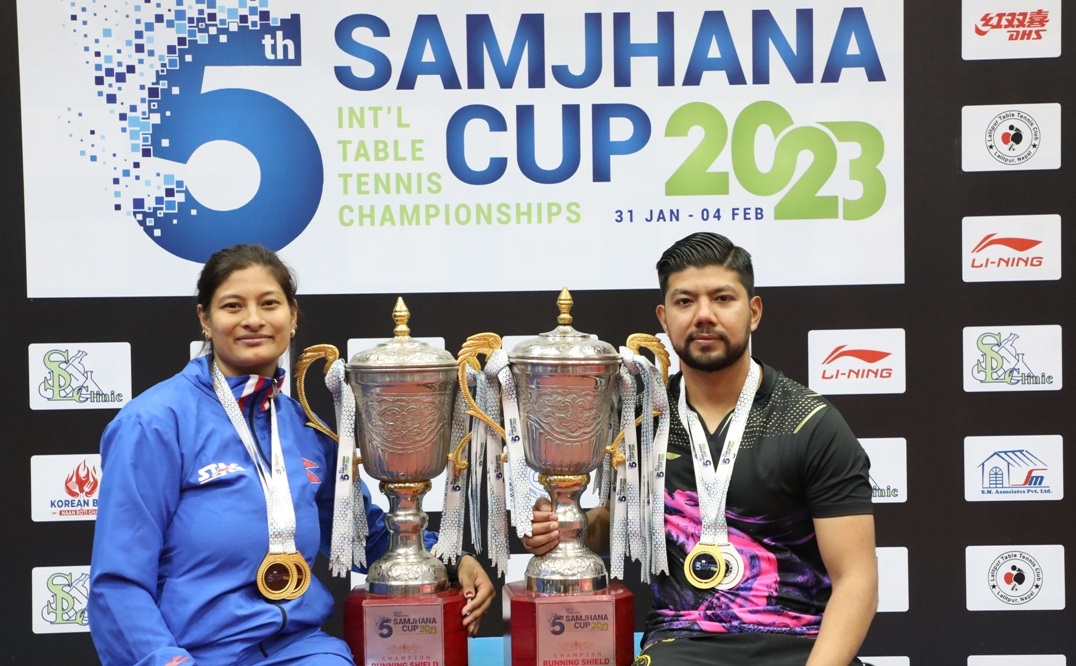विनेश खनियाँ र नवीता श्रेष्ठले पाँचौं सम्झना कप अन्तर्राष्ट्रिय टेबलटेनिस प्रतियोगिताको सिंगल्स उपाधि शनिबार जितेका छन्। नेपाल प्रहरी क्लबद्वय विनेश पुरुष र नवीता महिला सिंगल्समा च्याम्पियन हुन्।