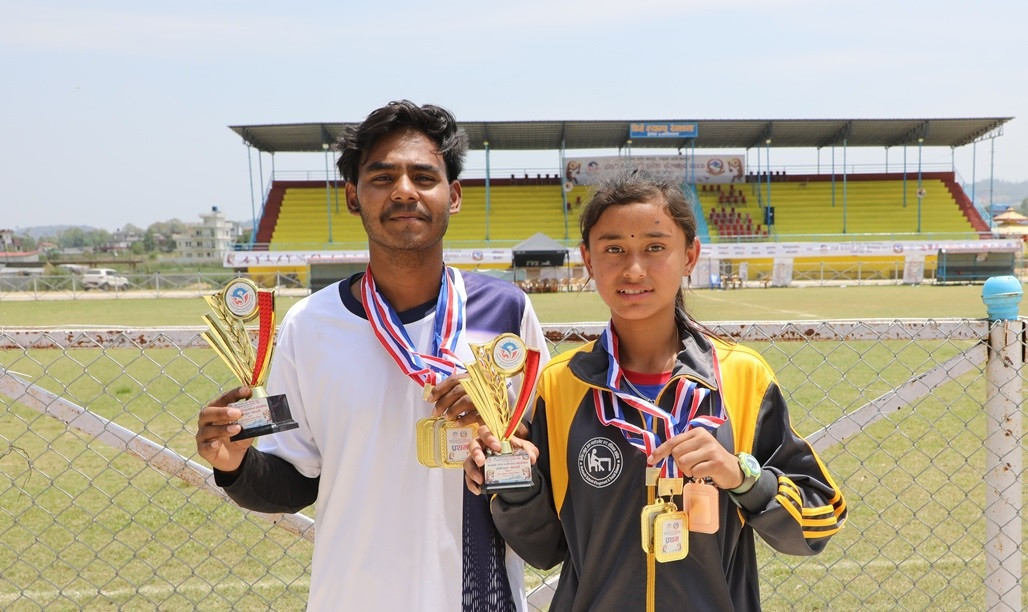मकवानपुरकी डिना गोपाली र काठमाडौंका सहनचन्द्र शाहले जारी बागमती प्रदेश खेलकुदअन्तर्गत एथ्लेटिक्सको १०० मिटर दौडमा स्वर्ण जितेका छन् ।