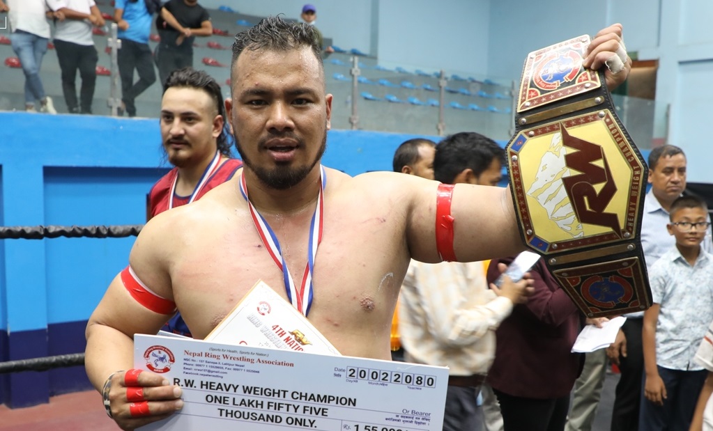 नुवोकाटे टाइगरले चौथो राष्ट्रिय रिङ रेस्लिङ प्रतियोगिताको हेभी वेट उपाधि शनिबार जितेका छन् ।