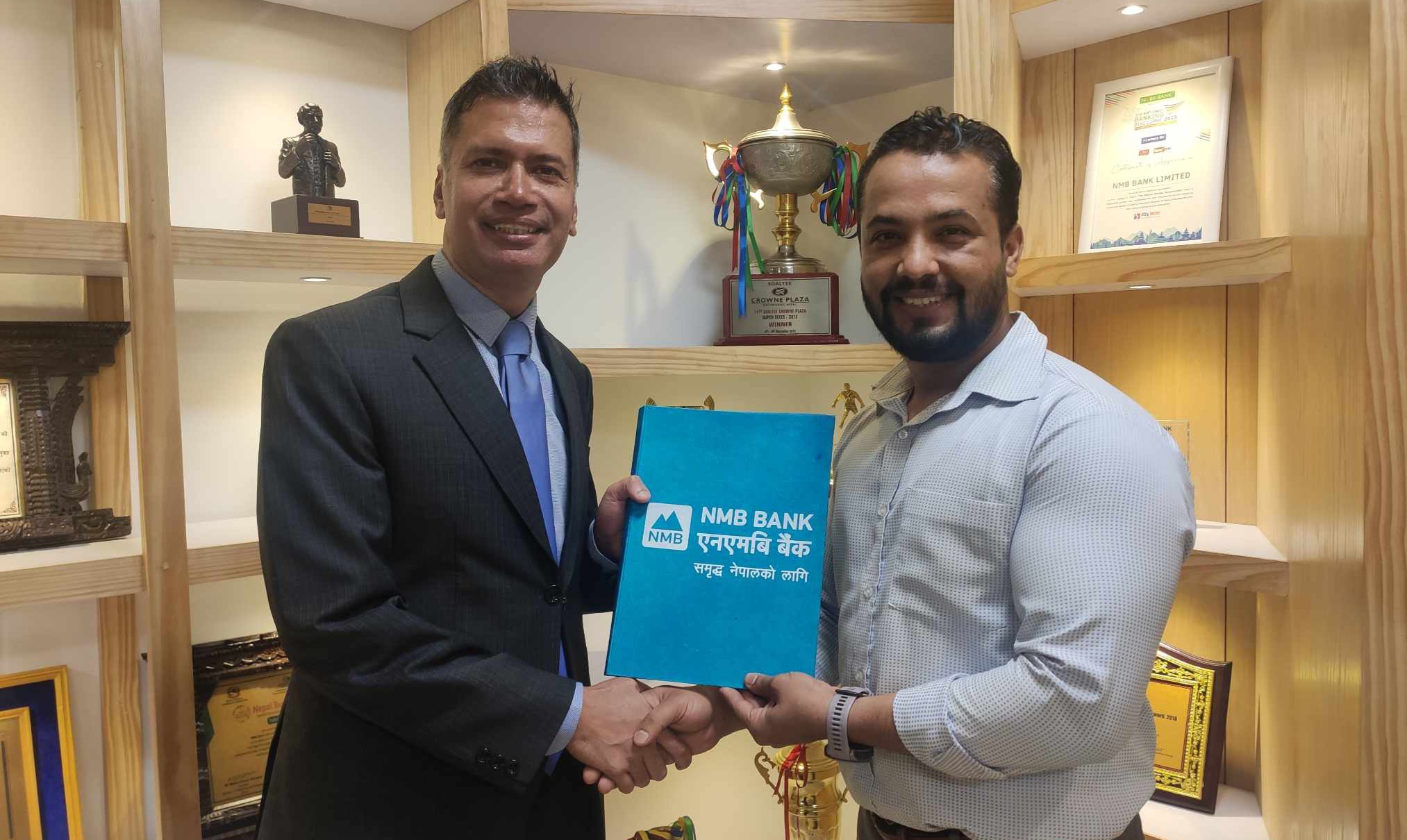 इन्डोर फुटबल ग्राउन्डमा तीन दिन सञ्चालन हुने यु १४ फुटबल प्रतियोगिताको लागि आयोजक कपअन स्पेर्ट्स सेन्टरले बुधबार एनएमबि बैंकसँग प्रायोजक सम्झौता गरेको छ । सम्झौता–पत्रमा कपअन स्पोर्ट्स सेन्टरका प्रमुख कार्यकारी अधिकृत दामोदर (बद्री) भट्टराई र एनएमबि बैंकका नायव प्रमुख कार्यकारी अधिकृत सुदेश उपाध्यायले हस्ताक्षर गर्नुभयो । कपअन स्पोर्ट्स सेन्टरले आफ्नै इन्डोर फुटबल ग्राउन्ड (बालुवाखानी, कपन) सहित राजधानीका विभिन्न स्थानमा युवा खेलाडी उत्पादनका लािग काठमाडौं किकर्स फुटबल एकेडेमी सञ्चालन गरिरहेको छ ।